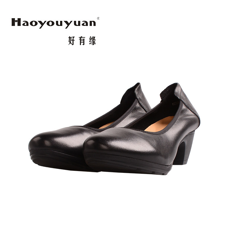 好有缘女士软牛皮粗跟职业工装简约新款防打脚单鞋热门设计联盟服务商